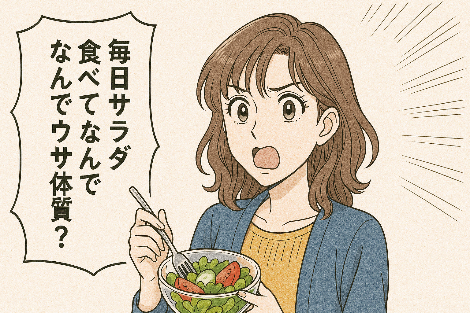 そう思ったことはありませんか?実はそれ、“草食べてるウサギ”状態かもしれません。生野菜はヘルシーに見えますが、代謝を動かす栄養はほとんど不足しています。特に女性に必要なタンパク質や鉄、ビタミンB群が入っていないので、体のエンジンは回りません。